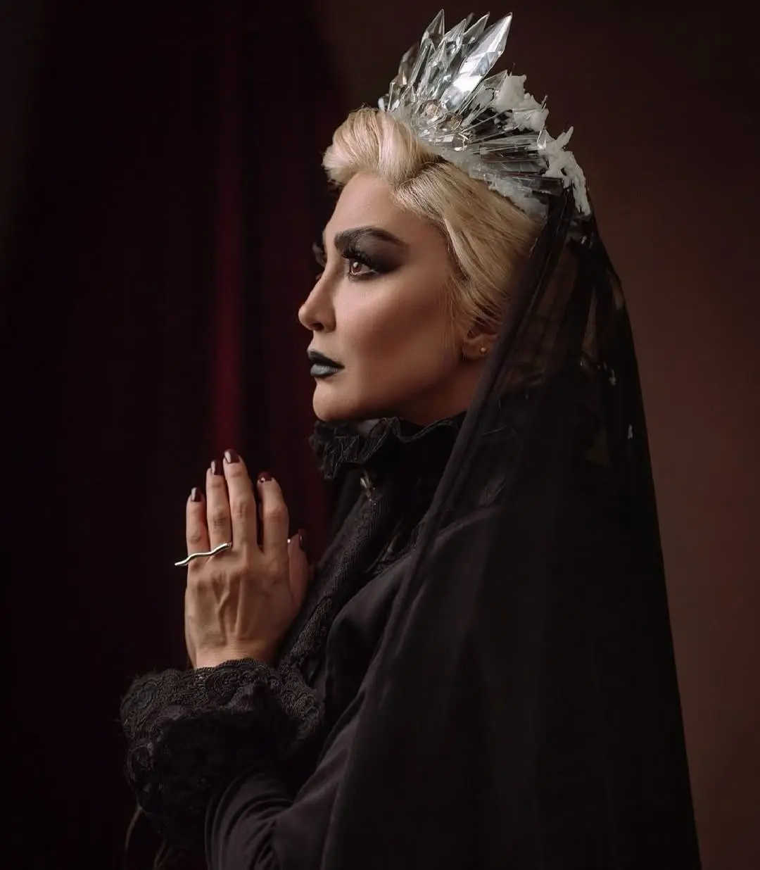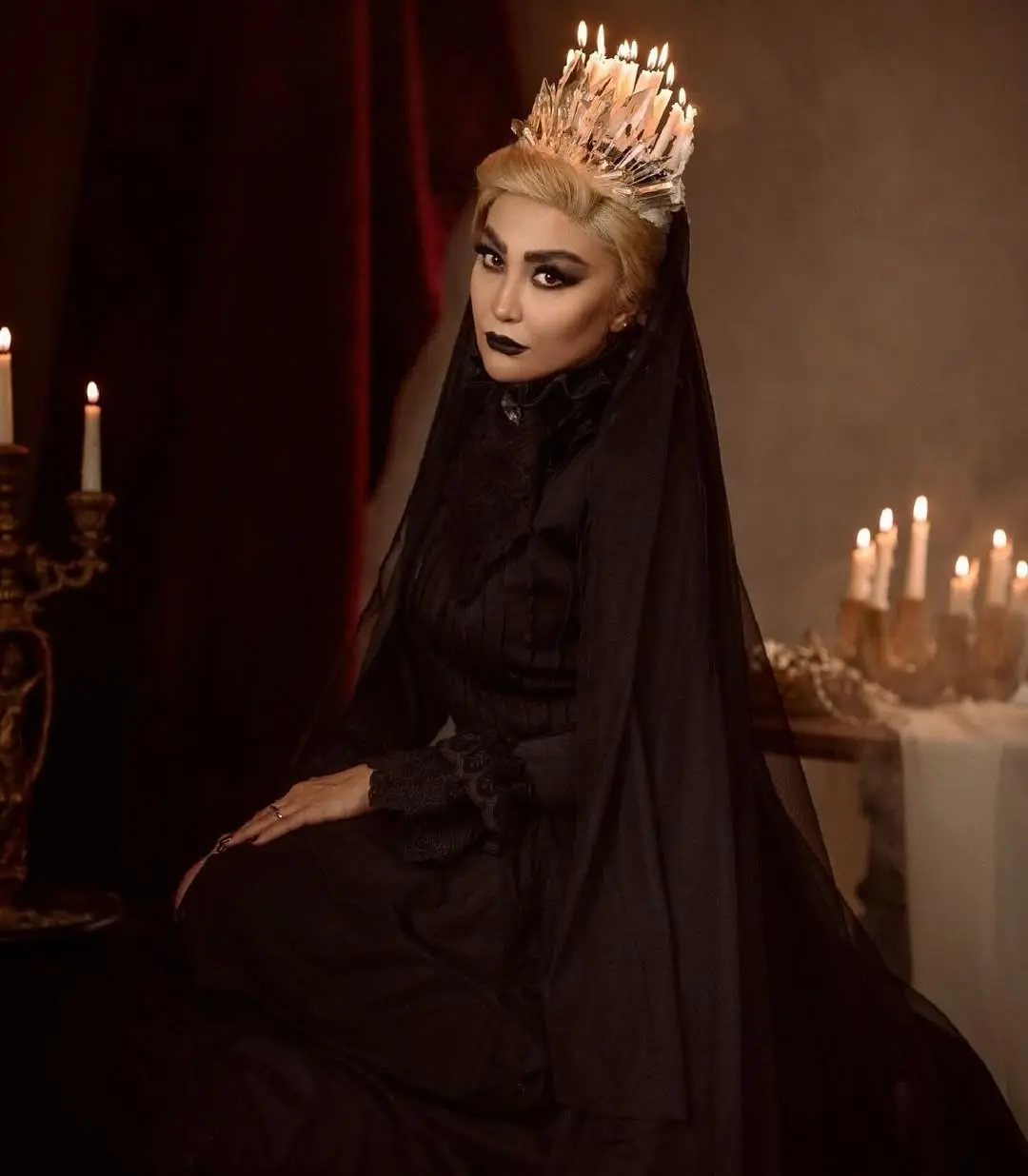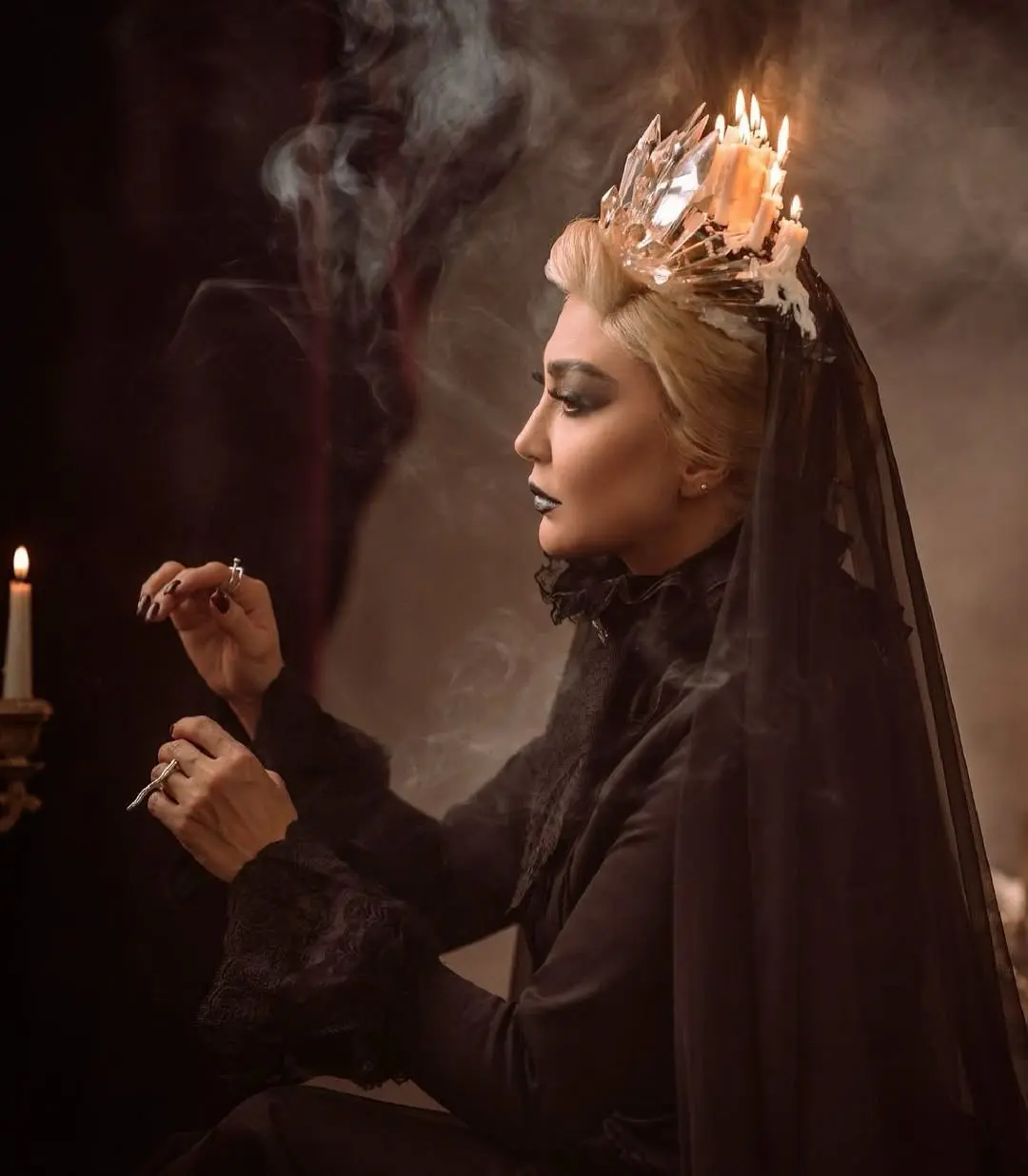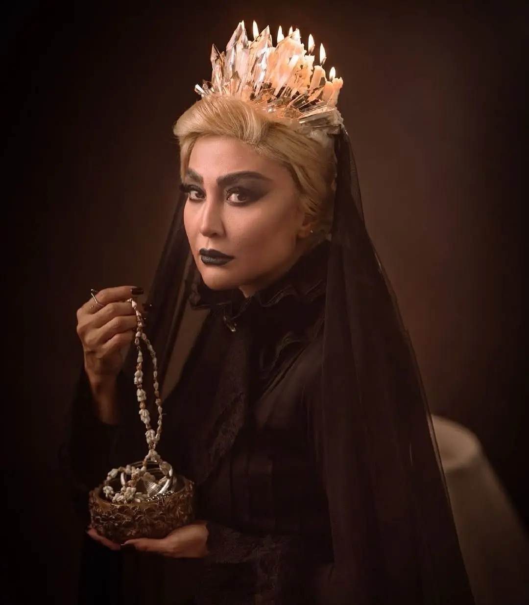 آیتم قابل توجه در این تصاویر تاج خانم معصومی بود که در کنار اوت فیت مشکی ایشون و فضای تاریک اطراف خودش رو به خوبی نشان میداد. این تاج متشکل از کریستال و شمع های واقعی روشن بود که با توجه به توضیحات عکس، تاج نماد نور در تاریکی است. عکس ها با الهام از زنی قوی در تاریکی است که همیشه دنبال نور حرکت می کند و هیچوقت از پا نمی نشیند. او زنی است که تاریکی را با وقار نگاه می کند و روشنایی را التماس نمیکند چون روشنایی راهش را به سمت او پیدا می کند چرا که قدرت صاحبش را می شناسد.